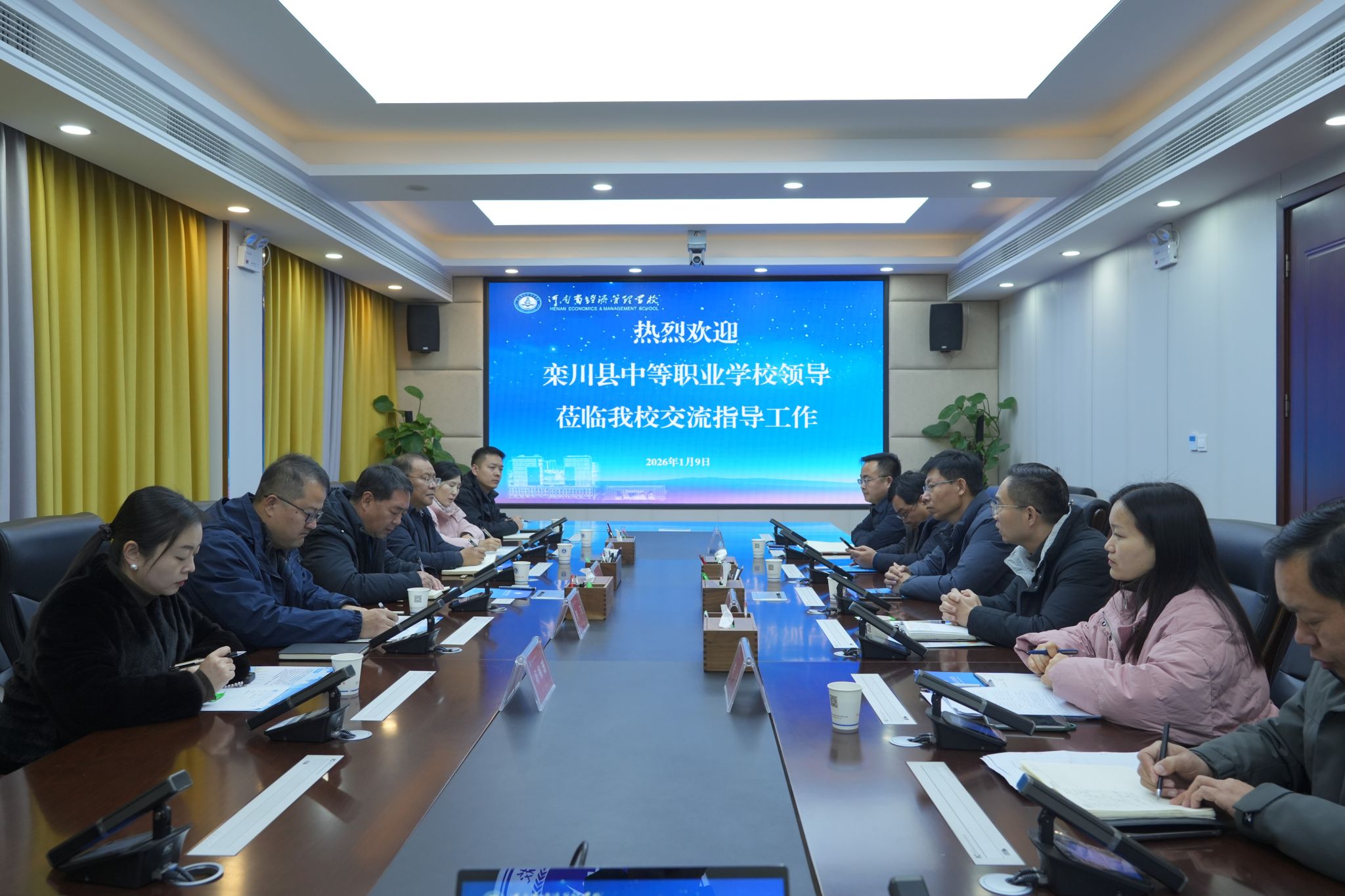 1月9日,栾川县中等职业学校党委委员、工会主席周少武带领教务处、团委及相关专业负责人一行6人到校参观交流,我校党委委员、副校长吴超携相关职能部门、系部负责人热情接待并陪同交流。座谈会上,吴超代表学校对周少武一行表示热烈欢迎,简要介绍了学校的发展历程与办学概况,重点介绍了我校“双优工程”建设的总体思路...