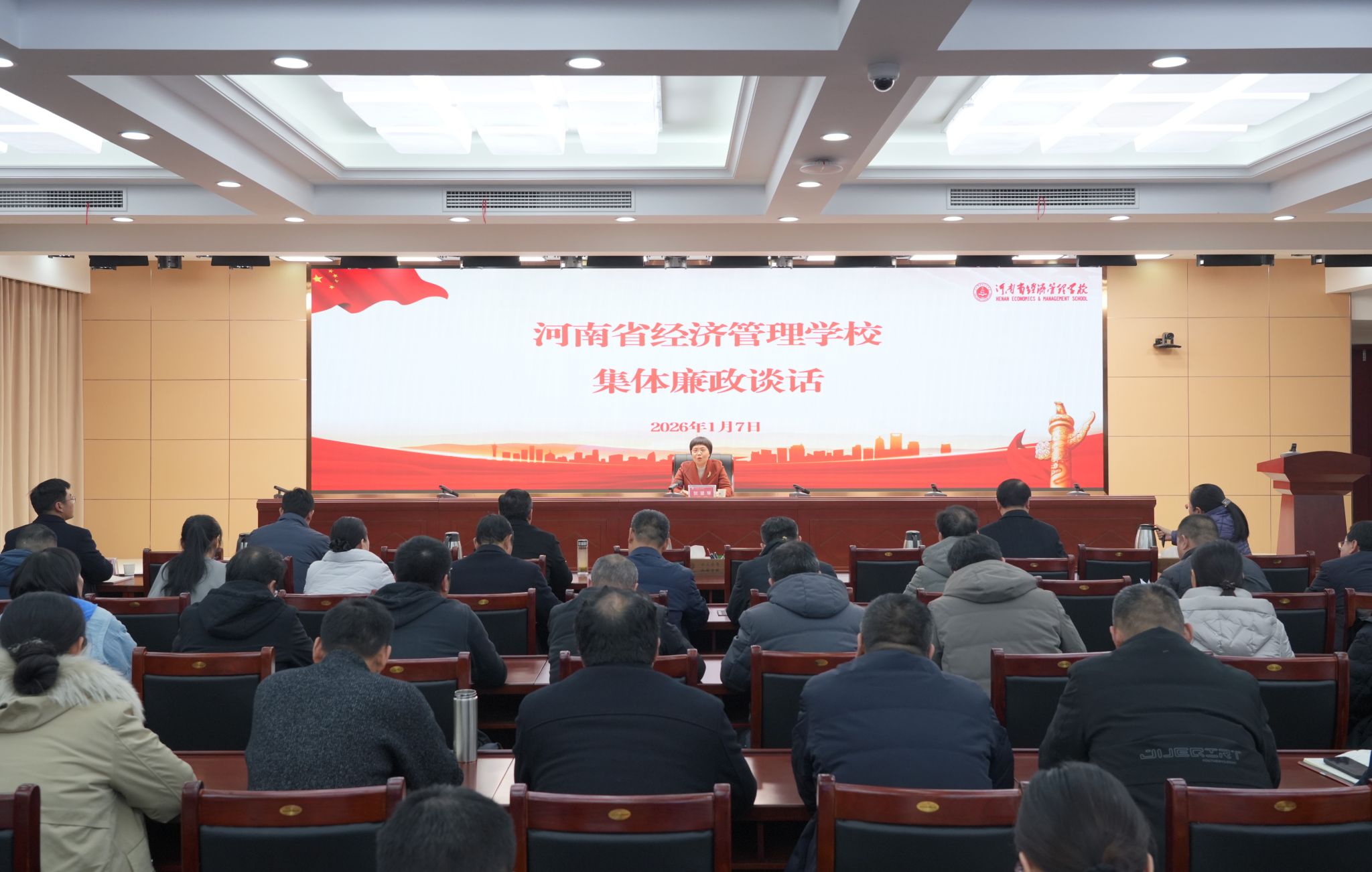 为深入贯彻全面从严治党要求,切实巩固拓展中央八项规定精神学习教育成果,强化干部队伍纪律意识、规矩意识和责任意识,持续营造风清气正的校园政治生态,1月7日,我校在西区第二报告厅召开中层及以上干部集体廉政谈话会。党委书记贺望琢出席会议并讲话,学校领导班子成员、全体中层干部参加会议。贺望琢指出,春节将至...
