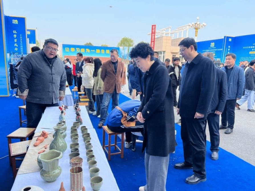 11月13日上午,我校艺术设计系代表学校前往南阳开放大学参加2025年南阳市全民终身学习活动周学习成果展示,参展项目为非遗陶艺技艺。副市长阿颖,市政协副主席、市教育局党组书记、局长杨文普等出席了本次活动。