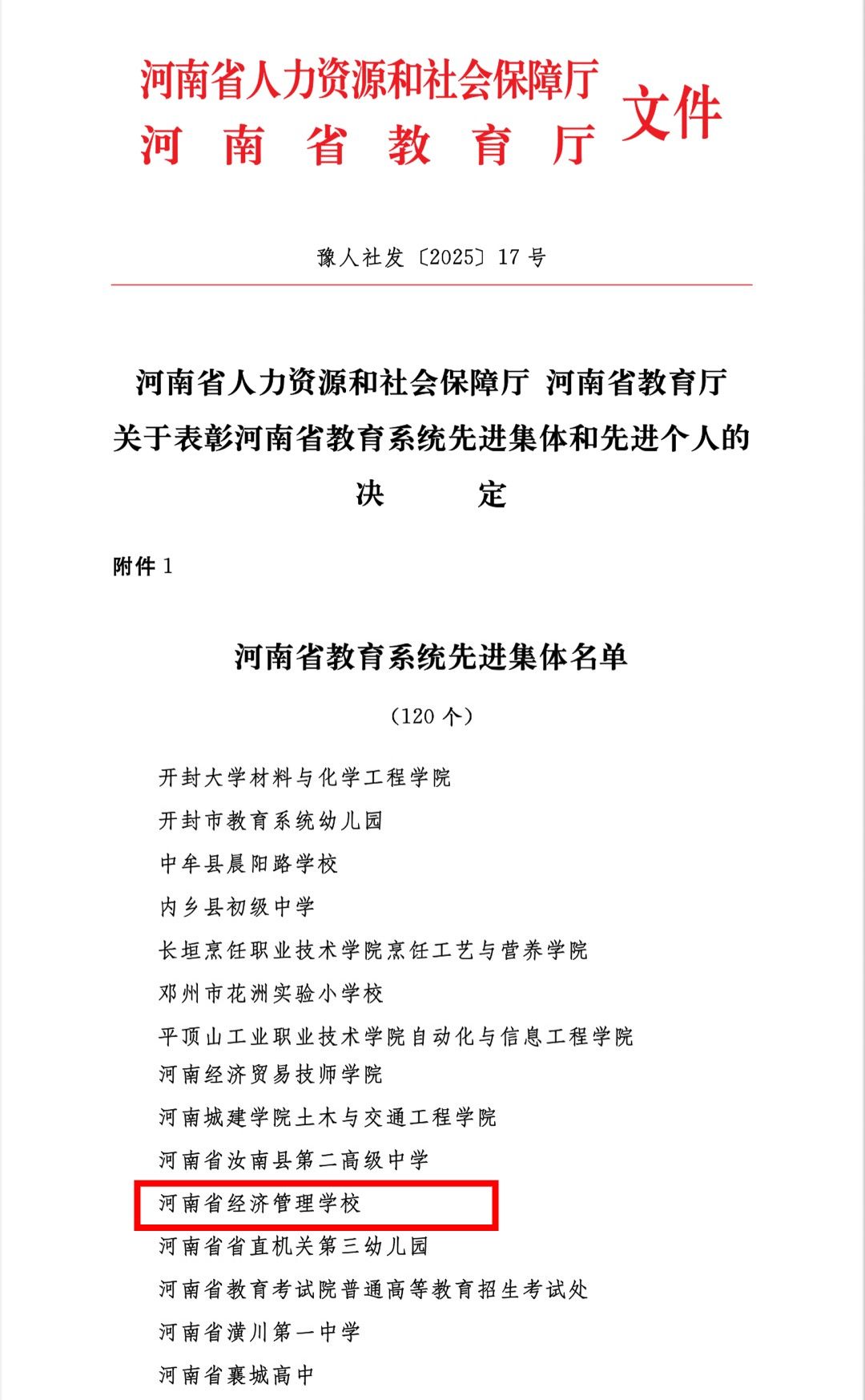近日,河南省人力资源和社会保障厅、河南省教育厅联合发布《关于评选表彰全省教育系统先进集体和先进个人的公示》。我校荣膺“全省教育系统先进集体”称号,王明丽教师获评“全省教育系统师德先进个人”。这份沉甸甸的荣誉,是对我校始终坚持为党育人、为国育才初心使命的充分肯定,更是全体经管人勠力同心、砥砺奋进的集体写照。
