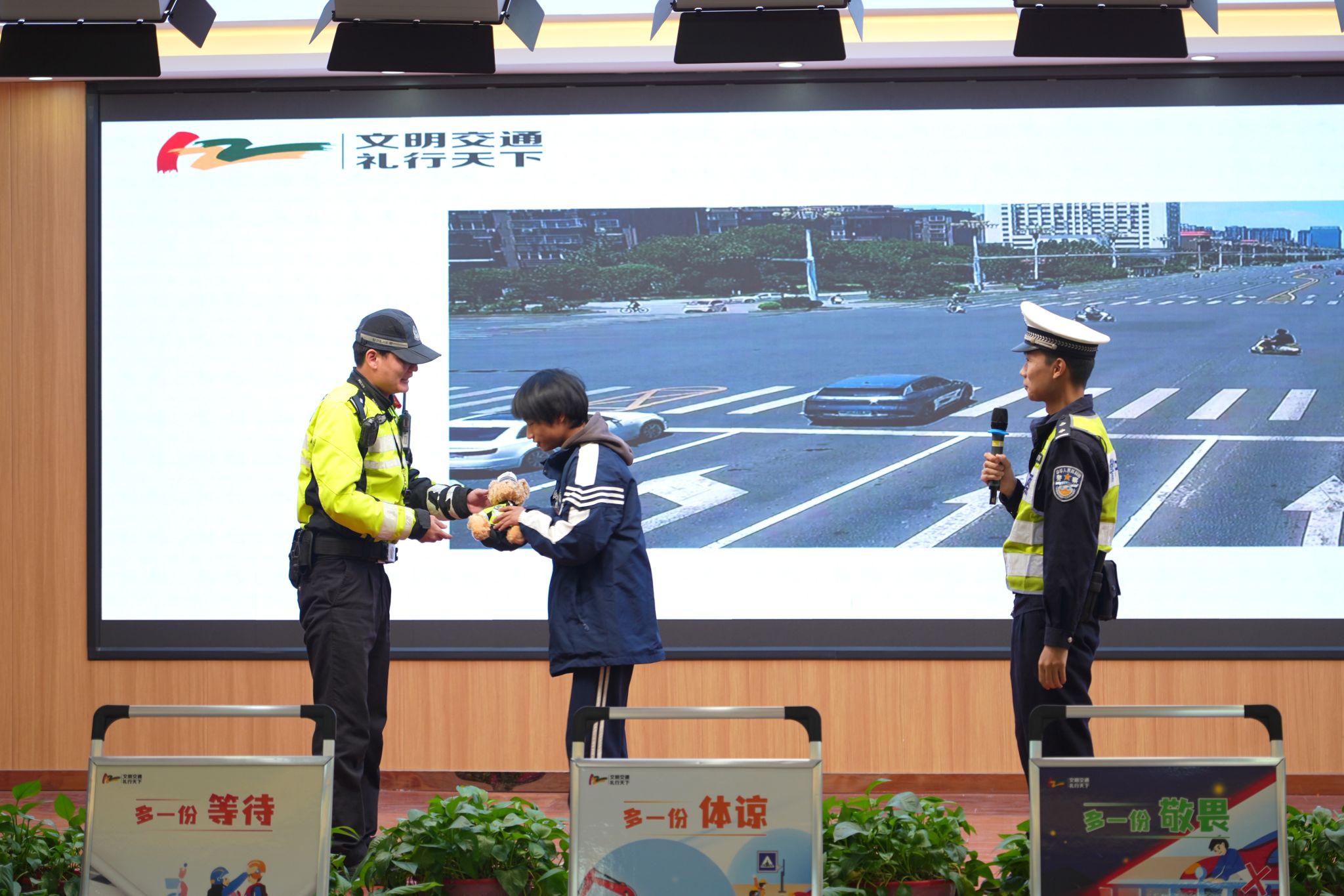 两位警官结合学生群体出行特点,以“知危险会避险”为核心,通过播放触目惊心的交通事故视频、剖析典型案例,让学生直观感受违规出行的危害。他们还针对步行、骑车、乘车三大场景给出具体建议,详细讲解了电动车、摩托车“非法改装”“飙车炸街”带来的严重危害,让学生在突发状况下能冷静应对、科学自救,通过互动问答的方式,与学生们进行深入交流,进一步加深了学生们对交通安全知识的理解。