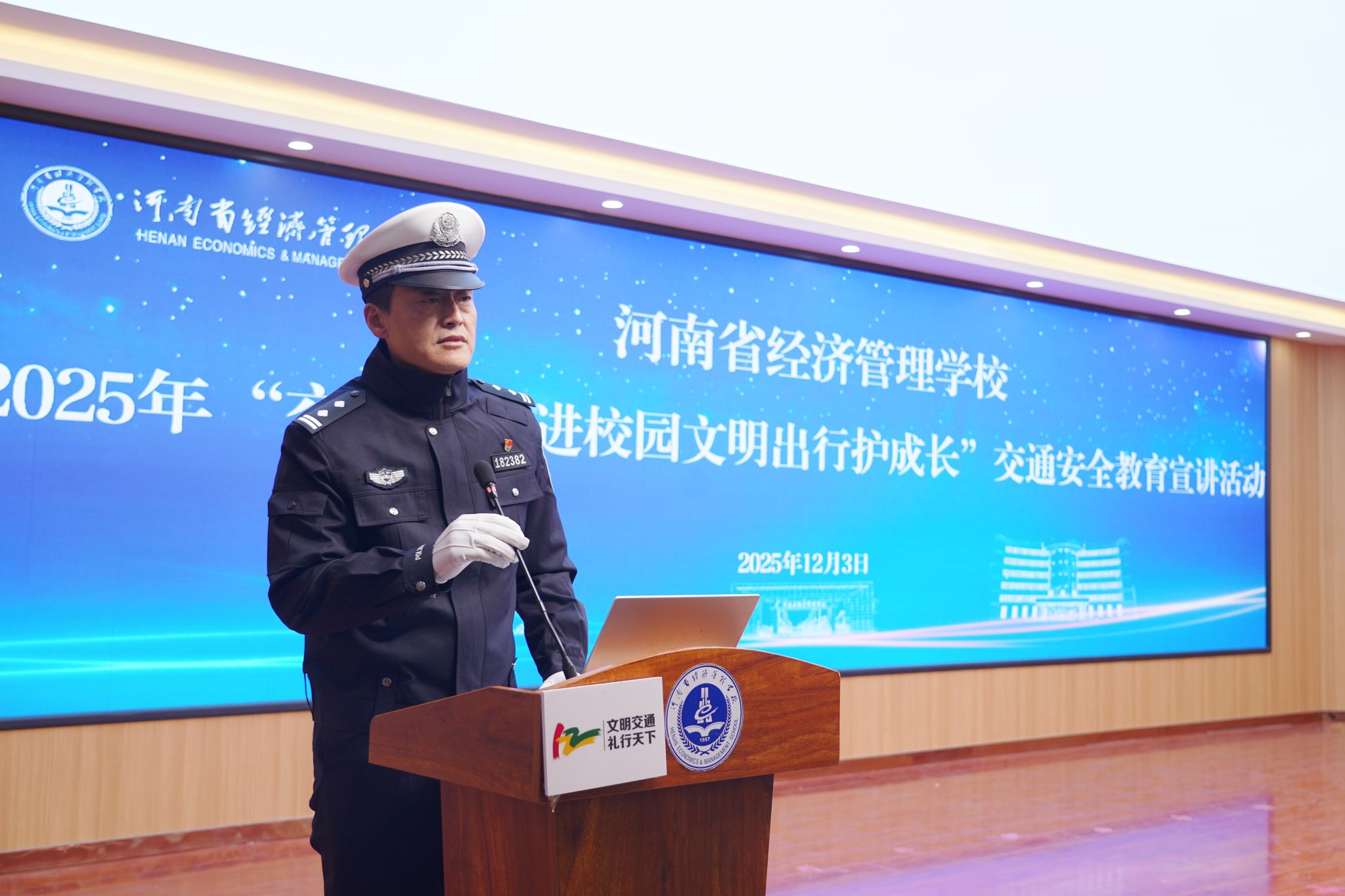 为切实加强校园交通安全宣传教育,进一步增强学生交通安全意识与自我保护能力,有效预防和减少道路交通事故,12月3日,我校在求诚楼学术报告厅开展“文明交通 礼行天下”主题宣讲活动。活动特邀南阳市交警支队第二勤务大队民警张敬良、史清元,为全校师生带来一堂生动的交通安全教育课。