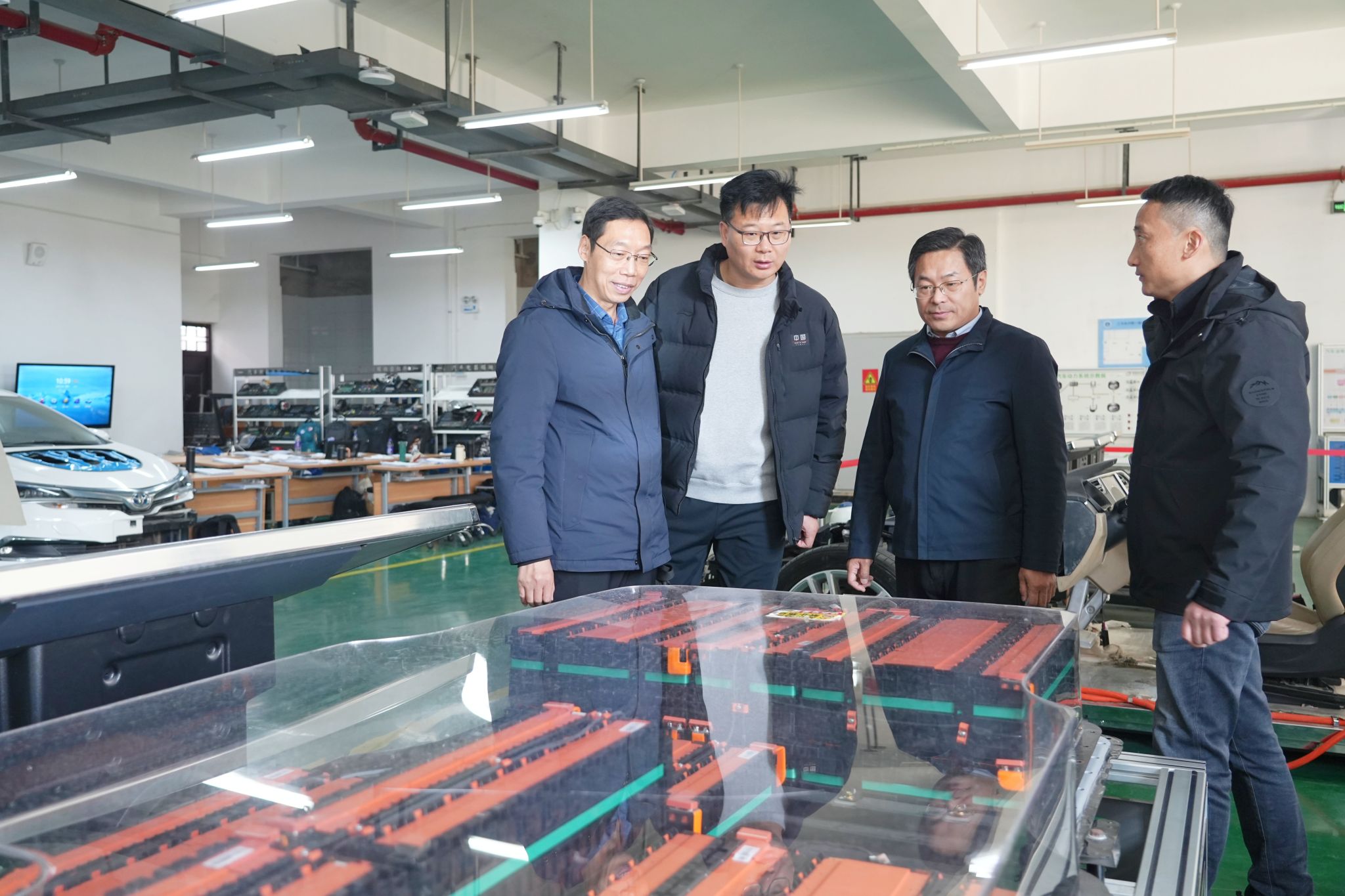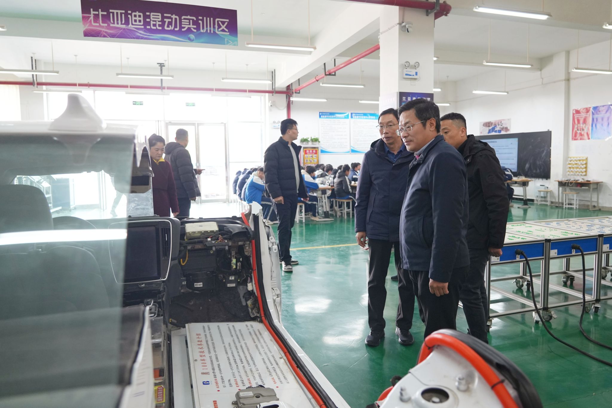 随后,刘华威一行参观了机械加工中心、工艺美术示范实训室、新能源汽车虚拟仿真实训基地等场所,对扎实的专业建设基础和完善的实训条件给予充分肯定。