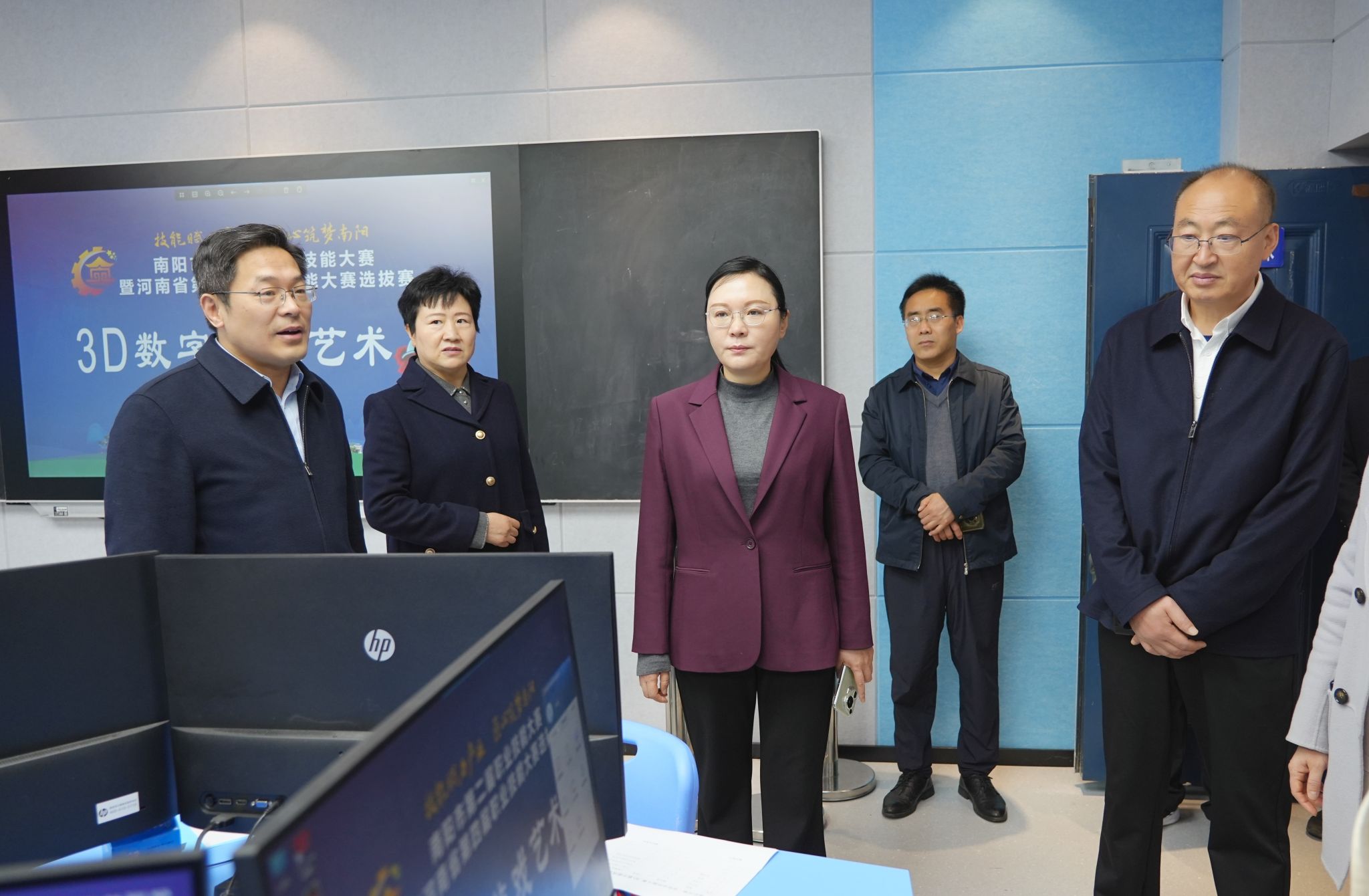 3月31日,南阳市政府副秘书长李菡、市人力资源和社会保障局局长郝以昆、市人力资源和社会保障局三级调研员屈云霞等一行莅临我校,实地督导分赛点筹备工作。李菡一行逐一勘验各竞赛场地,查看功能分区、设施设备、技术保障及环境布置等情况,详细了解选手备赛状态与技能训练提升情况。李菡对我校为此次大赛所做的认真积极准备给予充分肯定,并勉励大家勇立技能人才潮头,以精湛技能赋能产业发展,以匠心坚守筑梦南阳未来。