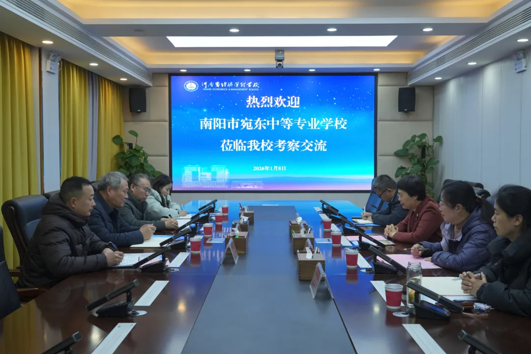 1月8日,南阳市宛东中等专业学校党委书记陈居政、副校长刘硕等一行4人到我校参观考察,并围绕职业教育高质量发展、专业建设创新、办学模式优化等主题开展交流观摩。学校党委书记贺望琢,党委委员、副校长吴超(女)及相关处室负责人出席座谈会。座谈会上,贺望琢代表学校对陈居政一行表示诚挚欢迎,并全面介绍了我校的发...