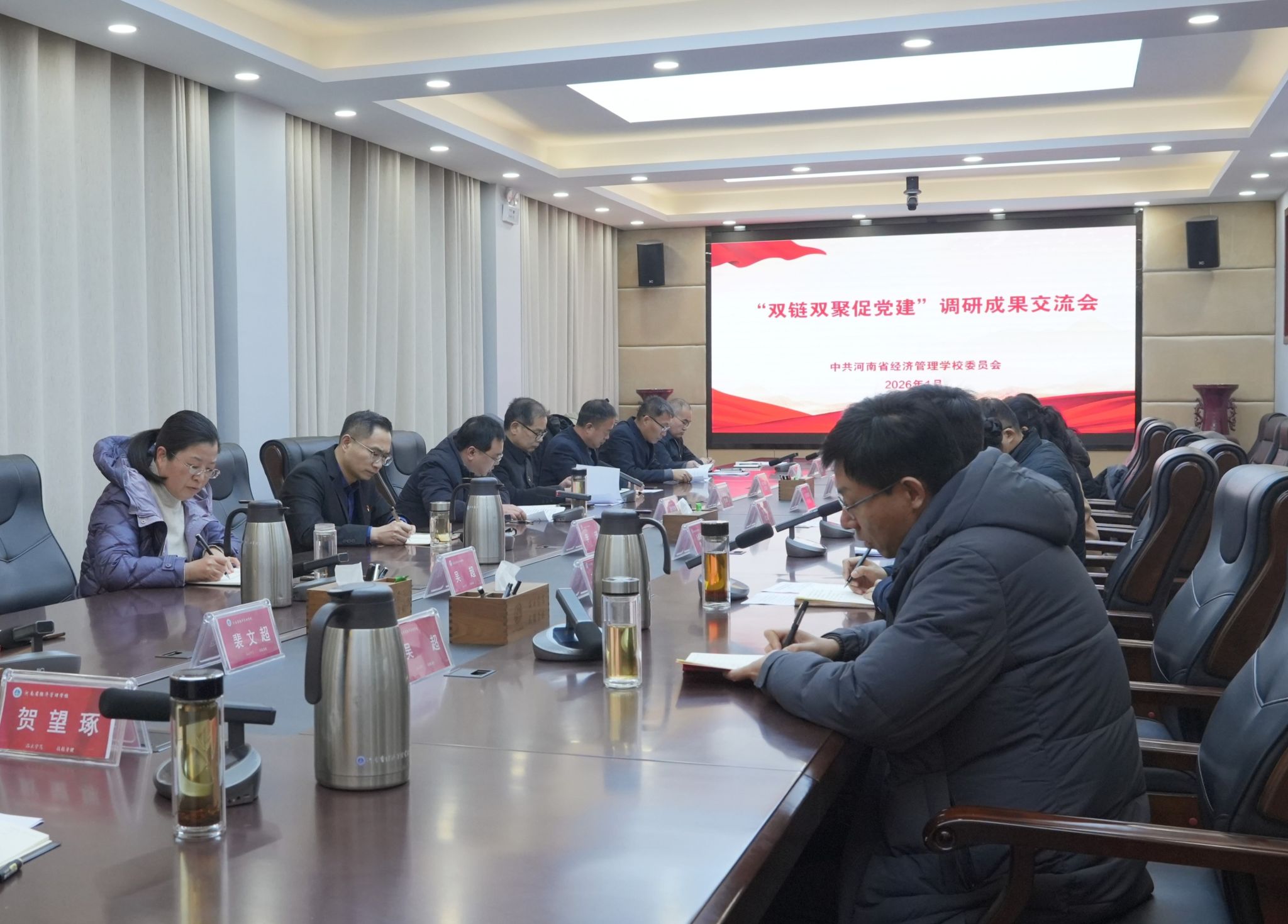 1月26日,学校党委在行政楼三楼会议室召开“双链双聚促党建”调研成果交流会。党委书记贺望琢出席会议并讲话,党委班子成员及各支部书记参加会议,会议由纪委书记李公昕主持。