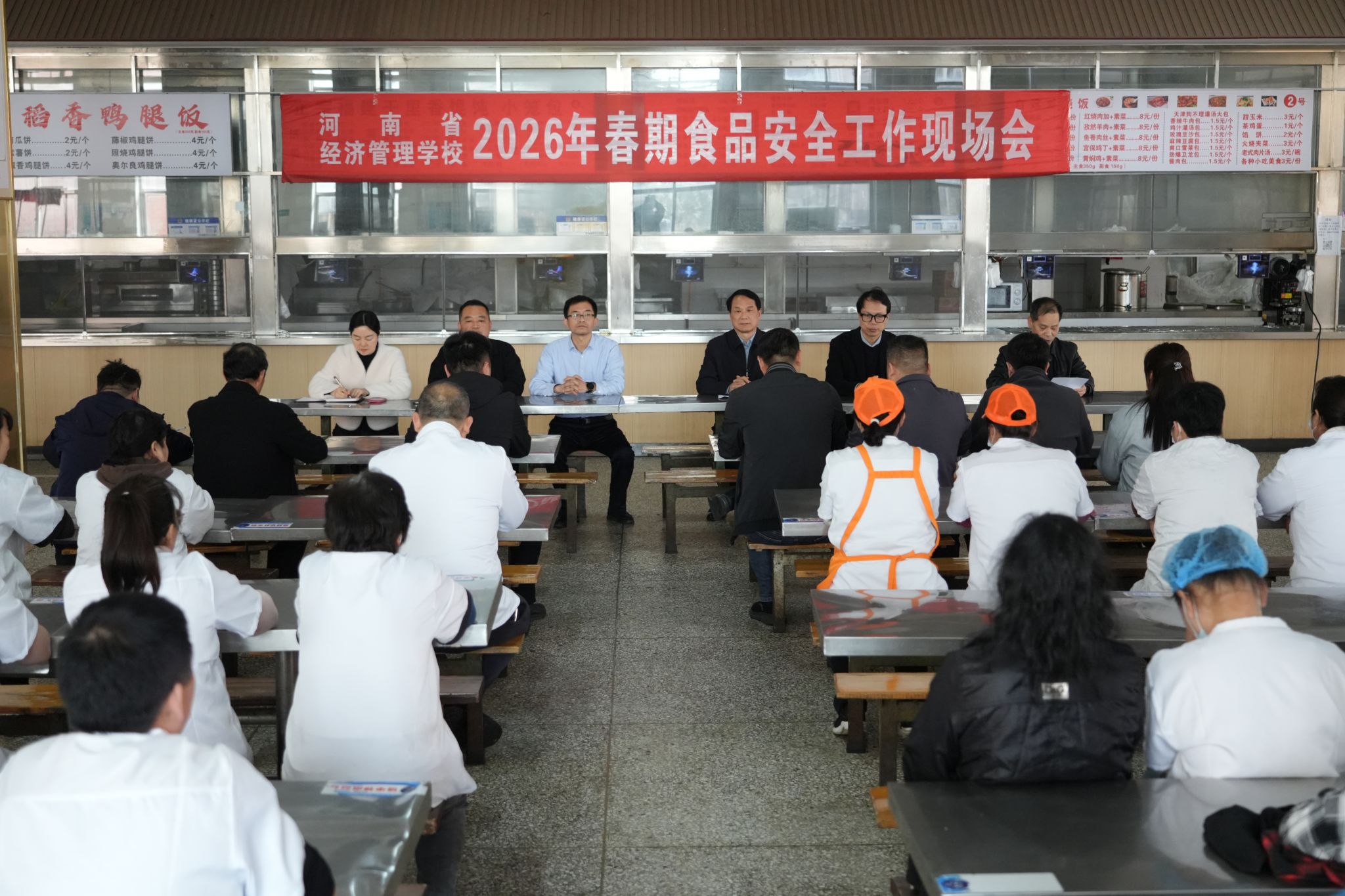 为深入贯彻习近平总书记食品安全“四个最严”要求,严格落实河南省教育厅2026年“校园餐”专项整治部署,切实筑牢校园食品安全防线,保障全校师生饮食健康与生命安全,3月27日,学校召开食品安全工作现场会。副校长裴文超出席会议并讲话,学校食品安全委员会成员、后勤服务处相关人员、各餐厅负责人及全体从业人员参加会议,会议由后勤服务处处长高延彬主持。