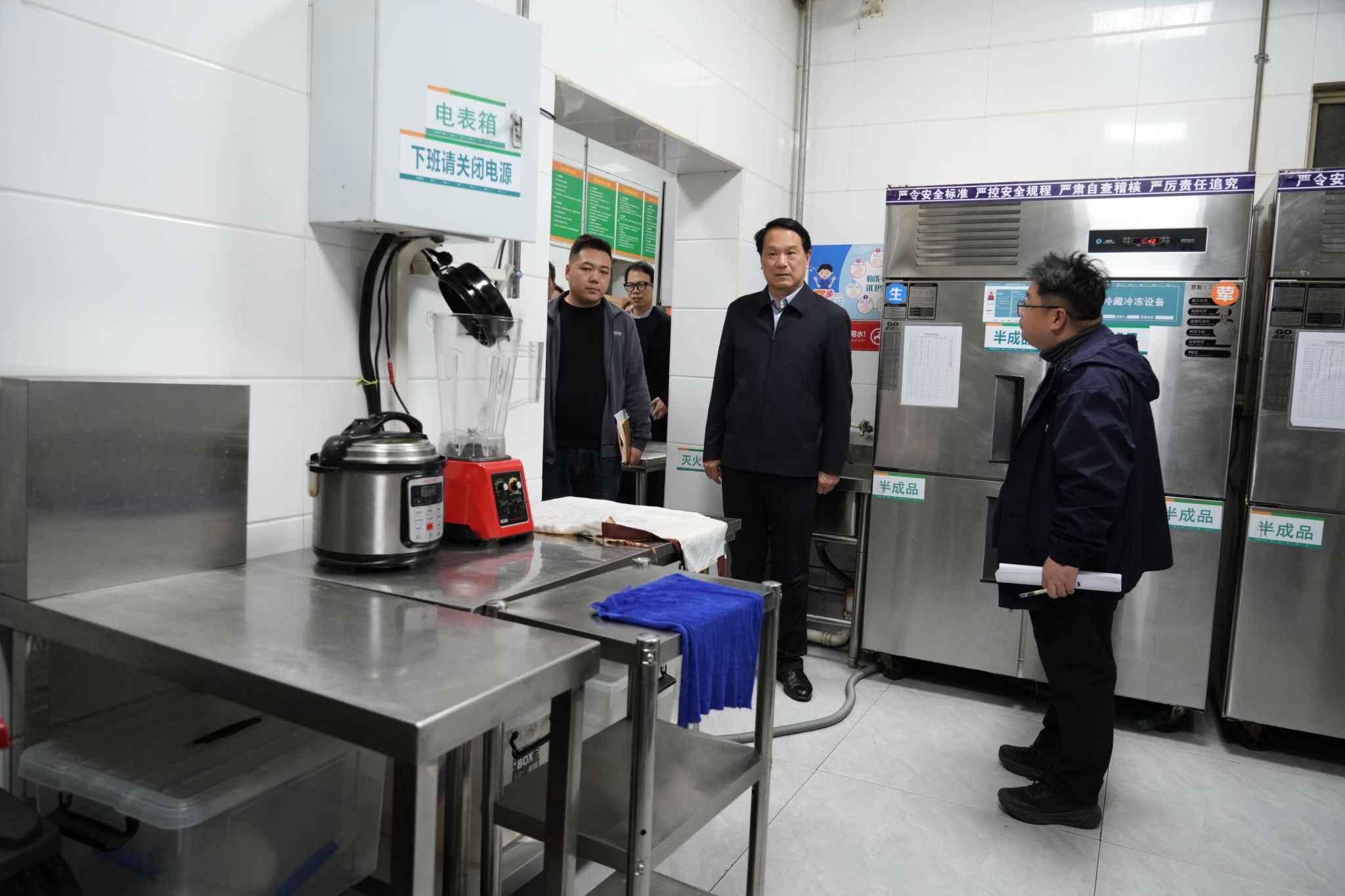 会前,裴文超带队深入各餐厅操作间、备餐间、食材储存区等关键区域开展实地检查