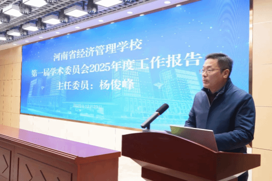 学校学术委员会主任委员杨俊峰向大会作《第一届学术委员会2025年度工作报告》。报告系统总结了学校学术建设在“十四五”最后关键一年中取得的突破性成效:一是前瞻重构专业体系。精准对接河南省“1+2+4+N”产业布局,通过多轮龙头企业调研与靶向论证,推动5大专业群动态优化,率先完成传统专业提质与新兴专业布局的双轨革新。二是集成式赋能师资发展。创新“评审-培育-竞赛”三维支撑机制,全年助力斩获省级以上教学科研奖项逾百项,实现青年教师从“教学新手”到“竞赛骨干”的跨越式成长。三是深度融通“双优”建设。主导完成从政策解读、方案设计到成果凝练的全程智力输出,为学校成功获取“双优”建设项目夯实基础。