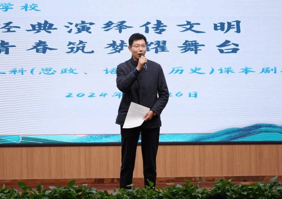 吴超从剧本创意、表演技巧等方面进行了细致点评。他指出,此次课本剧比赛不仅是一场文化与艺术的盛宴,更是一次深刻的思政教育和历史传承活动。希望同学们一是要树立远大理想,厚植家国情怀,将个人的理想追求融入国家和民族的发展大局之中,立大志、明大德、成大才、担大任。二是要弘扬传统文化,增强文化自信。希望更多的同学参与到课本剧表演的队伍中来,让课本剧表演进入更多课堂,被更多的师生喜爱、传播。三是要练好技能特长,坚持行稳致远,不断学习新知识、掌握新技能、培育新思维,以自己的专业技能报效国家,努力成为具有创新精神和实践能力的未来栋梁。