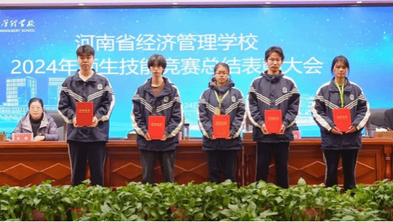 会上,副校长吴超宣读了《河南省经济管理学校关于对在省级以上竞赛活动中取得优异成绩的师生进行表彰的决定》,与会领导为获奖师生代表颁发了荣誉证书。2024年世界职业院校技能大赛争夺赛金奖获得者高恒同学、优秀指导教师代表陈南老师、参赛教师代表杨安然老师依次作竞赛经验分享。