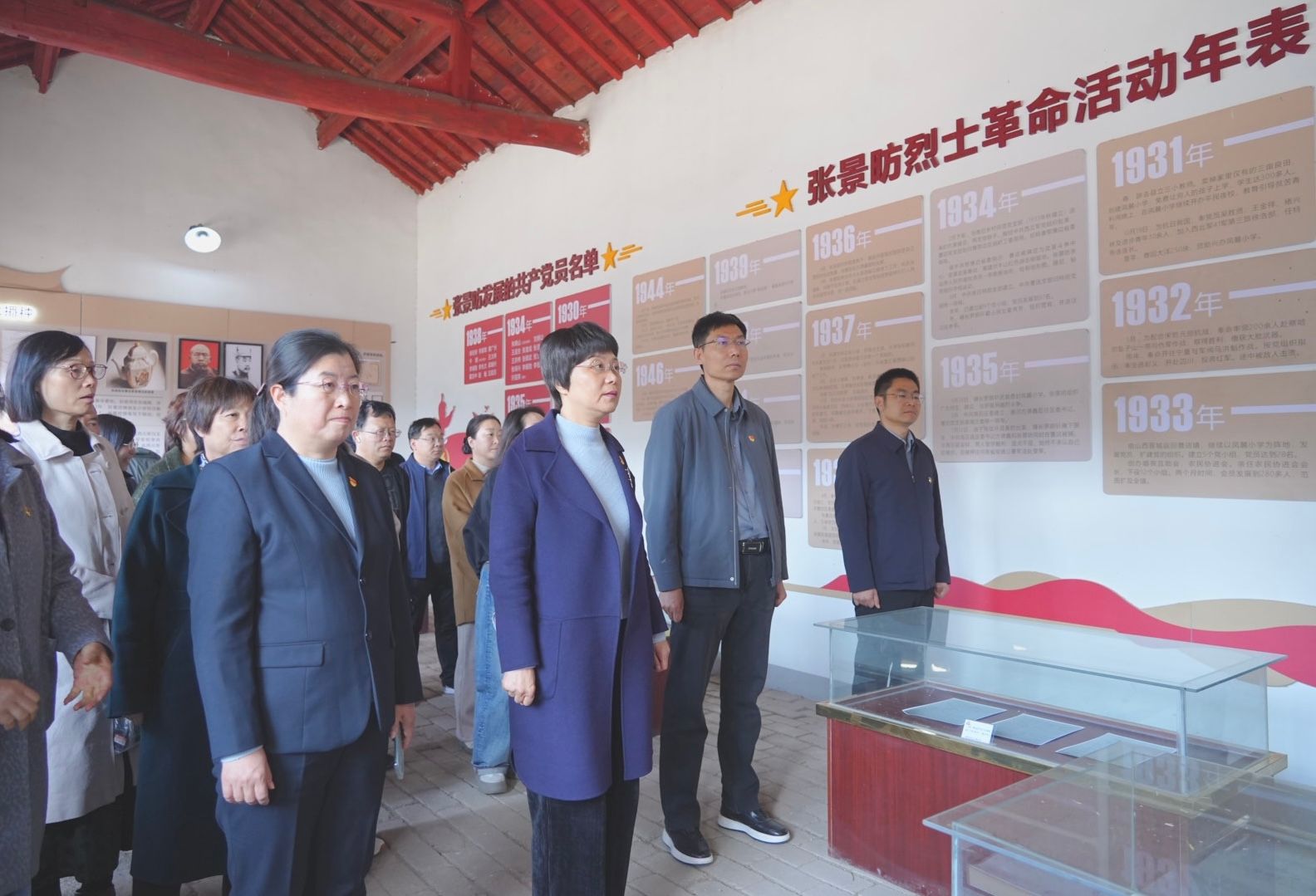 抵达中共南召县第一党支部旧址后,全体党员共同观看了《革命老区 红色摇篮》专题片,重温了那段筚路蓝缕的光辉历史,进一步加深了对党史的认识与理解。在讲解员的引导下,同志们依次参观了张景昉烈士简介、张景昉烈士活动年表、张景昉发展的共产党员名单、星火播种、虎口驰骋、助力自治、边区留芳、夕照商南、魂归故里九大板块。展厅以图文并茂的形式,展现了张景昉烈士和他的战友们可歌可泣的英雄事迹。大家参观后无不为之动容,对先烈们崇高的革命精神表达了深深的敬意。