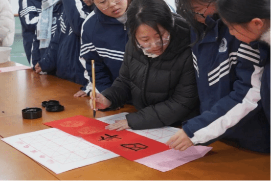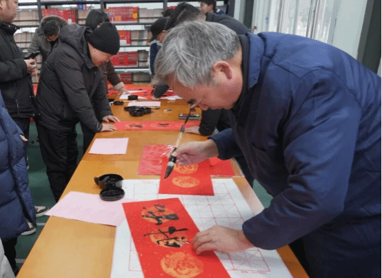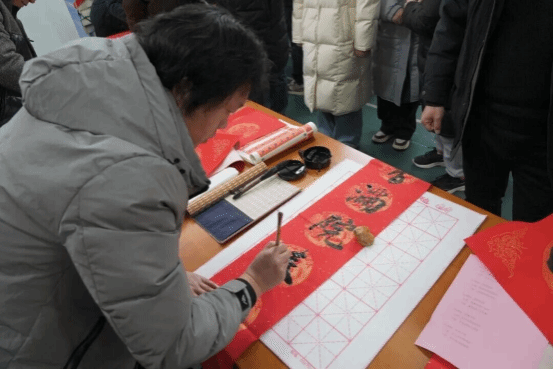 师生代表们一同提笔书联、共迎新春。一笔一画,书写的是组织凝聚的同心;一联一纸,传递的是文化育人的温度。现场师生或驻足欣赏,或亲自执笔,或共品联韵。书法大师们落笔传情之余,为师生们解读春联中的传统文脉与育人深意,让文化传承与立德树人同频共振。这些融合了技艺匠心与家国情怀的墨迹,成为校园里一道赓续薪火、凝心铸魂的红色风景。